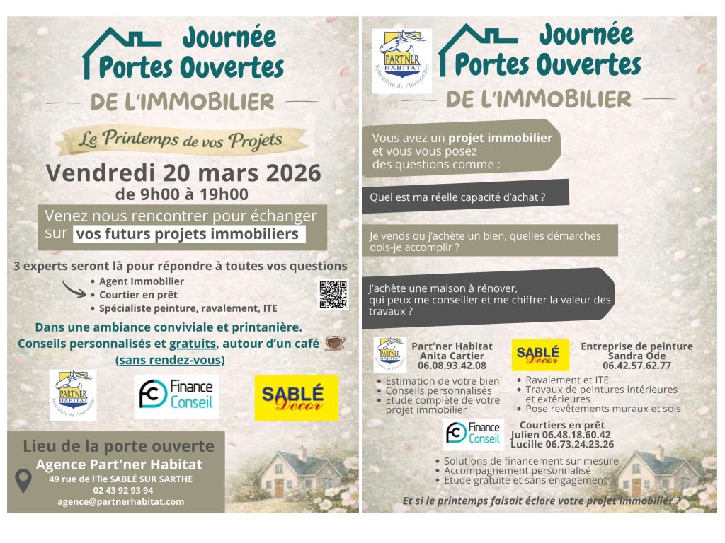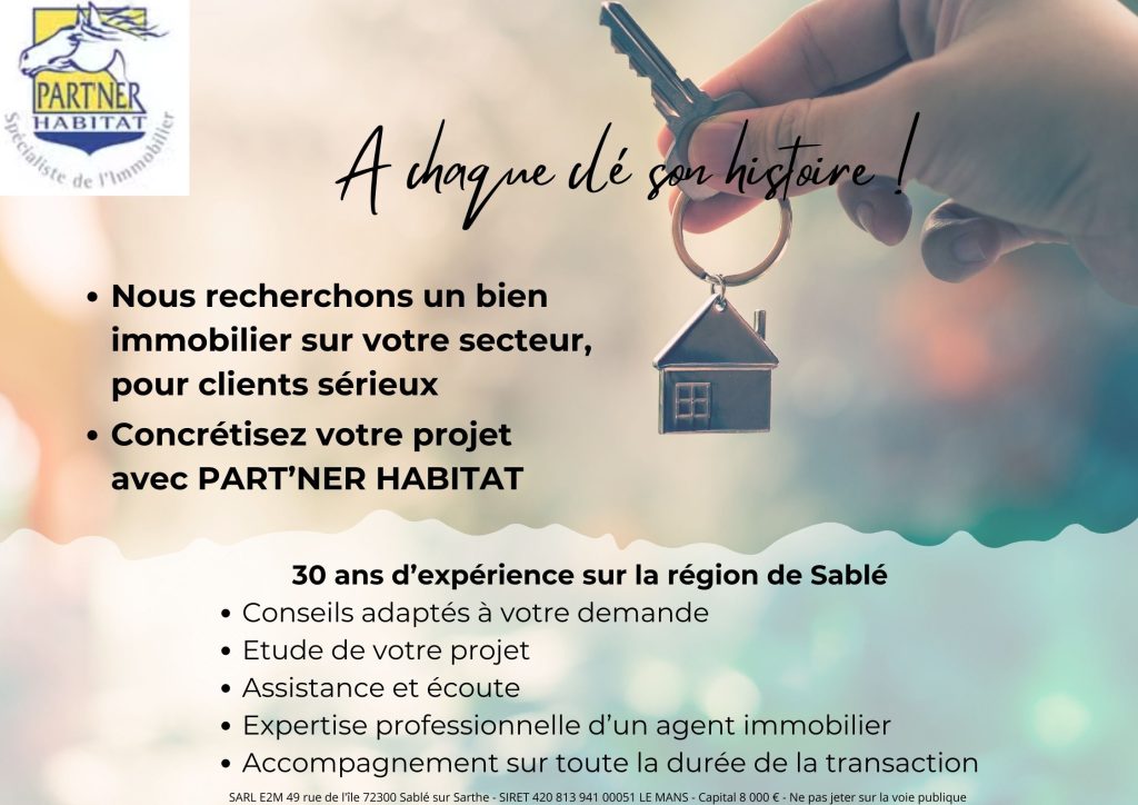 Actualités Part'ner Habitat Agence immobilière à Sablé-sur-Sarthe Nos annonces Nos ventes et compromis de vente Agence immobilière Suivez les actualités de l’agence immobilière Part'ner Habitat à Sablé-sur-Sarthe