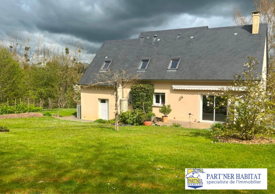 Maison contemporaine en lisière de bois – 124 m2 habitables – Jardin arboré de 2000 m2. Venez découvrir cette charmante maison de construction traditionnelle, idéalement située en pleine nature offrant calme et sérénité. 124 m2 habitables. Intérieur moderne, lumineux et chaleureux. Rez-de-chaussée :Un bel espace de vie de 34 m2 ouvert sur une cuisine fonctionnelle, aménagée et équipée (11 m2). Une chambre avec salle d’eau privative.WC séparé À l’étage, mezzanine, trois chambres, salle de bains avec WC. La maison est équipée d’un chauffage performant par pompe à chaleur. Un garage attenant. Le jardin arboré de 2000 m2 est particulièrement agréable : il dispose d’une belle terrasse en bois équipée d’un store banne, ainsi que d’une rocaille agrémentée d’une cascade d’eau, créant une atmosphère zen et relaxante. Parfaite pour une famille ou pour ceux qui recherchent un cadre naturel préservé tout en restant fonctionnelle et confortable.