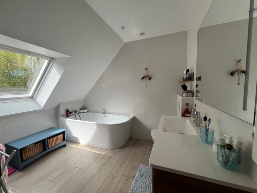 Maison contemporaine en lisière de bois – 124 m2 habitables – Jardin arboré de 2000 m2. Venez découvrir cette charmante maison de construction traditionnelle, idéalement située en pleine nature offrant calme et sérénité. 124 m2 habitables. Intérieur moderne, lumineux et chaleureux. Rez-de-chaussée :Un bel espace de vie de 34 m2 ouvert sur une cuisine fonctionnelle, aménagée et équipée (11 m2). Une chambre avec salle d’eau privative.WC séparé À l’étage, mezzanine, trois chambres, salle de bains avec WC. La maison est équipée d’un chauffage performant par pompe à chaleur. Un garage attenant. Le jardin arboré de 2000 m2 est particulièrement agréable : il dispose d’une belle terrasse en bois équipée d’un store banne, ainsi que d’une rocaille agrémentée d’une cascade d’eau, créant une atmosphère zen et relaxante. Parfaite pour une famille ou pour ceux qui recherchent un cadre naturel préservé tout en restant fonctionnelle et confortable.
