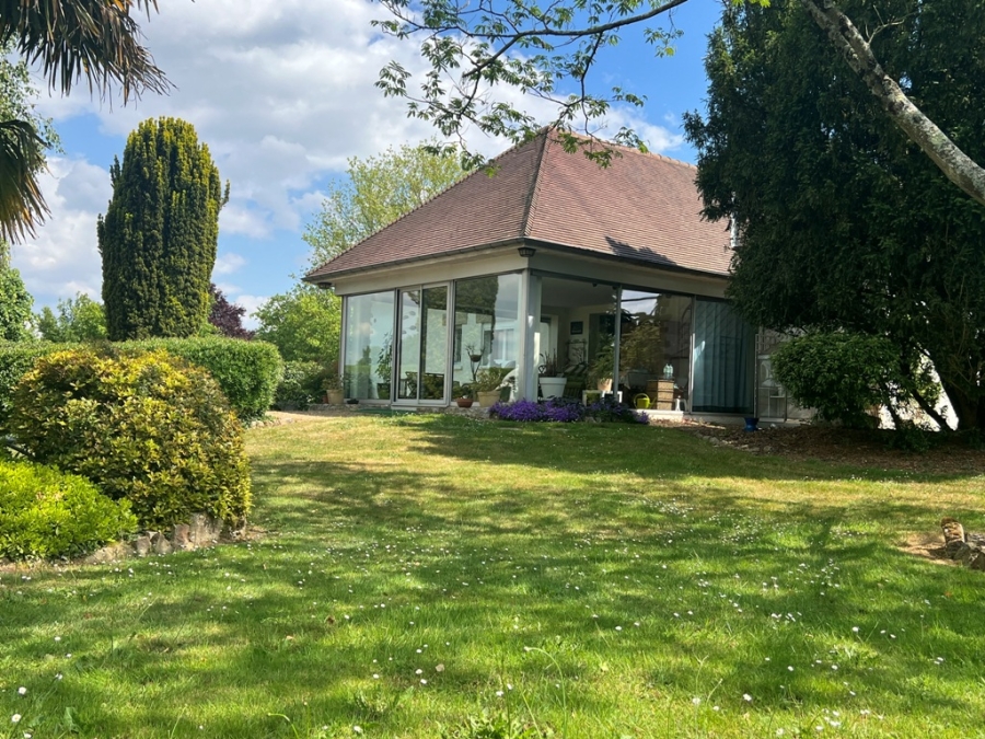 Maison familiale d’exception – 263 m2 habitables – Terrain clos arboré de 5 904 m2 – Véranda chauffée + sous-sol total Dans un cadre verdoyant et préservé, cette spacieuse maison de construction traditionnelle sur sous-sol enterré total offre 263 m2 habitables et un mode de vie généreux, idéal pour une grande famille ou les amoureux de la nature sans vis-à-vis. Rez-de-chaussée : o Salon-séjour lumineux et convivial de 44 m2 avec cheminée o Cuisine aménagée et équipée de 15 m2 o Trois belles chambres o Bureau indépendant (parfait pour le télétravail ou un coin calme) o Salle d’eau + WC Étage : o Vaste palier o Deux chambres supplémentaires o Salle de jeux spacieuse de 29 m2 (polyvalente : espace enfants, home cinéma, salle de sport, bureau partagé…) Véranda chauffée : une véritable extension de vie, baignée de lumière, parfaite pour des repas familiaux, un coin lecture cosy ou un salon d’hiver toute l’année. Sous-sol total (enterré et accessible) : o Buanderie pratique o Garages (plusieurs véhicules ou stockage important) o Chaufferie avec chaudière au gaz de ville o WC o Deux grandes pièces polyvalentes (cave à vin, atelier, salle multimédia, rangements ou futur aménagement habitable) Extérieur : terrain immense clos et arboré, intimité absolue, potentiel énorme (piscine, verger, potager, terrain de jeux, écuries, ou simplement profiter de la nature en toute sérénité). Cette maison allie le charme authentique d’une construction traditionnelle (volumes, cachet) à un confort familial complet et des espaces multiples. Un bien rare pour ceux qui rêvent d’une grande propriété sans compromis sur l’espace extérieur, dans un environnement calme et verdoyant.